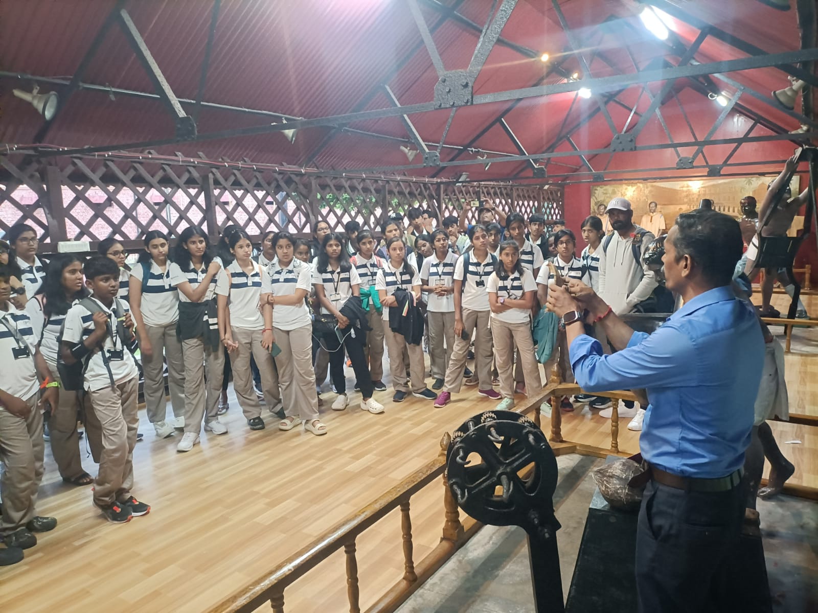 Their visit to the historic Cellular Jail, was a poignant reminder of India’s struggle for independence. As students wandered through the corridors of this notorious prison, they gained a profound understanding of the sacrifices made by our freedom fighters. The sound and light show in the evening provided a dramatic and emotional retelling of the island’s history, leaving everyone reflecting on the importance of freedom. Next on their itinerary was the world-renowned Radhanagar Beach, often hailed as one of the most beautiful beaches globally. With its pristine white sand, crystal-clear waters, and breathtaking sunsets, students had the opportunity to relax, play beach games, and soak in the natural splendor that surrounded them. Havelock’s underwater world awaited as students embarked on an exhilarating scuba diving expedition. Under the guidance of certified instructors, they plunge into the azure depths, discovering a kaleidoscope of marine life and vibrant coral reefs. The experience fosters teamwork, courage, and a profound appreciation for the wonders beneath the ocean’s surface. The students also visited Chidiya Tapu, known as the ‘Bird Island.’ Students observed a myriad of avian species, capturing the beauty of nature through their lenses. The day concludes with a visit to Munda Pahar, where panoramic vistas unfold, offering a perfect backdrop for group photos and shared memories.